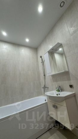 - в ванной комнате: ванна со смесителем, раковина с тумбой и смесителем, шкаф с подсветкой и зеркалом.