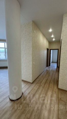 -по всей квартире натяжной потолок, в зоне кухни и коридора встроенные светильники, на стенах обои, на полу ламинат.