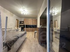 Практически вся функциональная мебель и необходимая техника, включая кухонный гарнитур, кровать, шкафы, стеллажи, вытяжку и светильники, остаются новому владельцу.