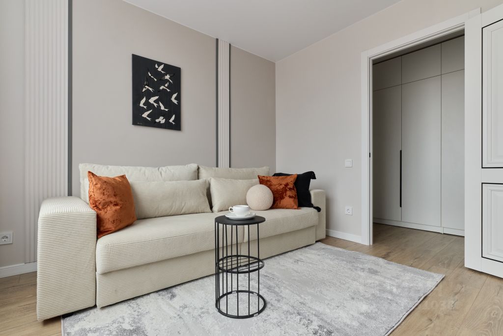 Предусмотрено очень много мест хранения вещей. Гардеробные шкафы в коридоре и комнатах, кровать с подьемным механизмом.
