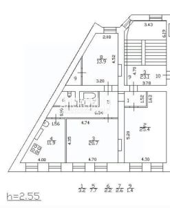 Комфорт: Раздельный санузел, потолки 2.55 м.