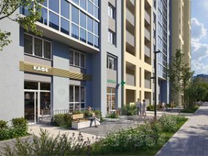 На территории комплекса будет выполнено благоустройство, размещены детские и спортивные площадки, а также зоны отдыха для жителей дома. Доступ в жилую часть разработан с учетом потребностей маломобильных групп населения.