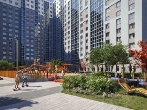 На территории комплекса будет выполнено благоустройство, размещены детские и спортивные площадки, а также зоны отдыха для жителей дома. Доступ в жилую часть разработан с учетом потребностей маломобильных групп населения.