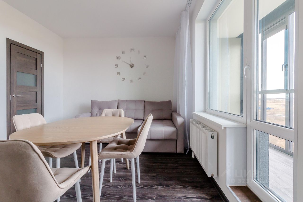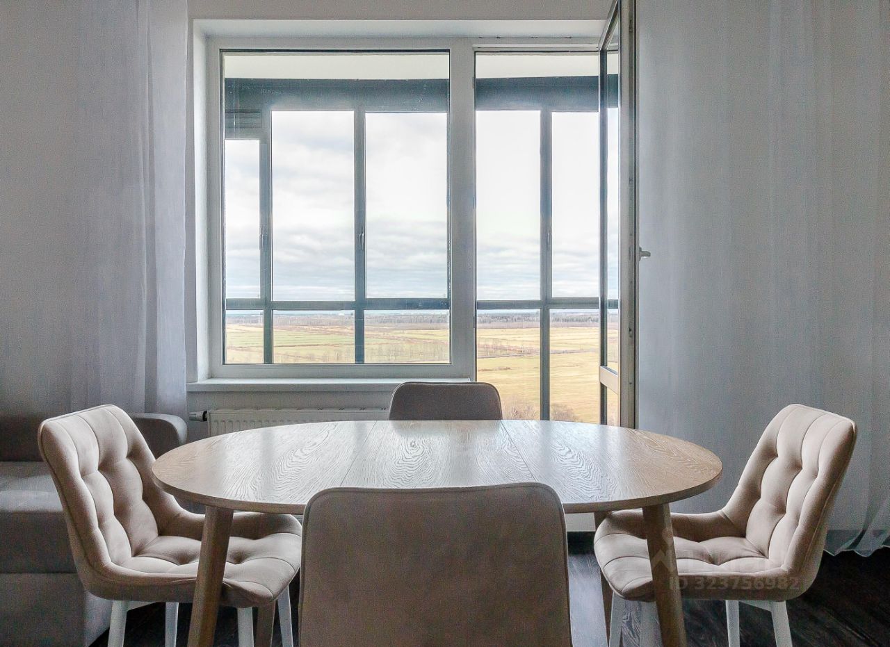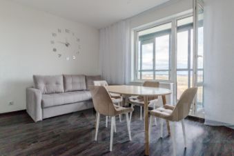 В квартире есть всё необходимое для жизни - кухня, со встроенной техникой "Bosch" (варочная панель, духовой шкаф, посудомоечная машина), новый диван, холодильник, обеденный стол и комфортные стулья. В квартире две лоджии - семиметровая с выходом из кухни и почти четыре метра с выходом из одной из спален.