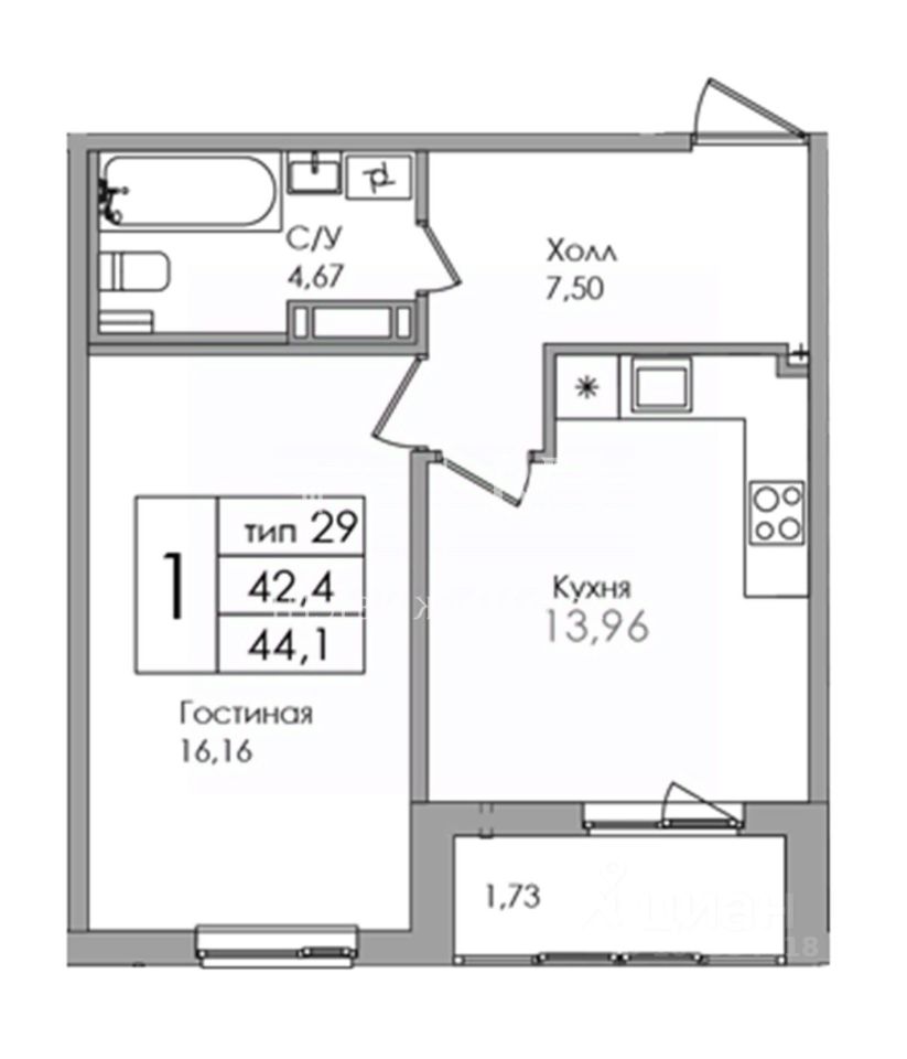 Прихожая площадью 7.5кв.м., совмещенный санузел.