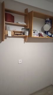 В прихожей новая дверца у шкафа под счётчик, домофон, остался кабель Ростелекома, не оптоволокно. Оставляем роутер от него. Интернет в данный момент в квартире не подключён, в доме есть. Домофон обычный, можно заменить на видеофон, так как к подъезду подключена система видеонаблюдения.