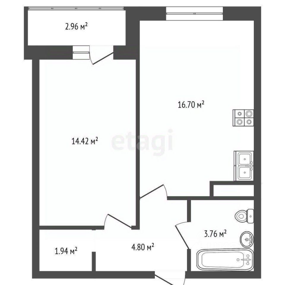 • Дополнительные помещения: лоджия 2,96 м² + гардеробная 1,94 м²