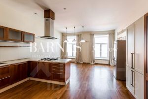 Квартира площадью 267 м² занимает два уровня, что создает уникальную атмосферу пространства и уюта. Парадный вход с набережной. Широкая лестница. Просторные комнаты наполнены светом благодаря большим окнам, из которых открывается захватывающий вид на реку и тихий двор.