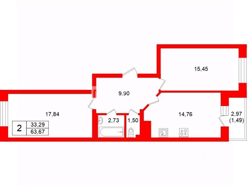 - 2 комнаты правильной прямоугольной формы, где вы можете реализовать любые задумки по планировки мебели.