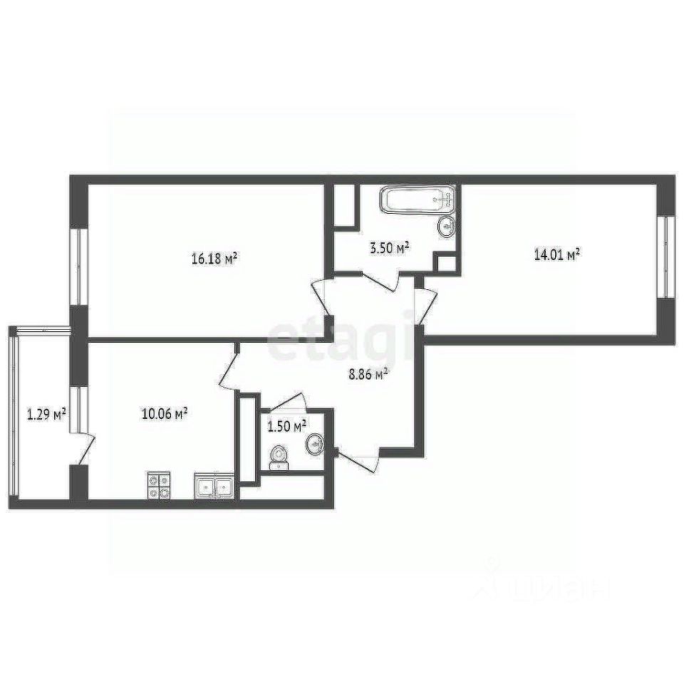 - две изолированные комнаты 16,2 м2 и 14,1 м2,
