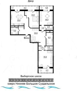 Имеются 3 застекленные лоджии и 1 балкон, с которого открывается шикарный вид на Суздальские озера и панораму Санкт-Петербурга.