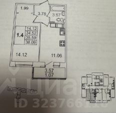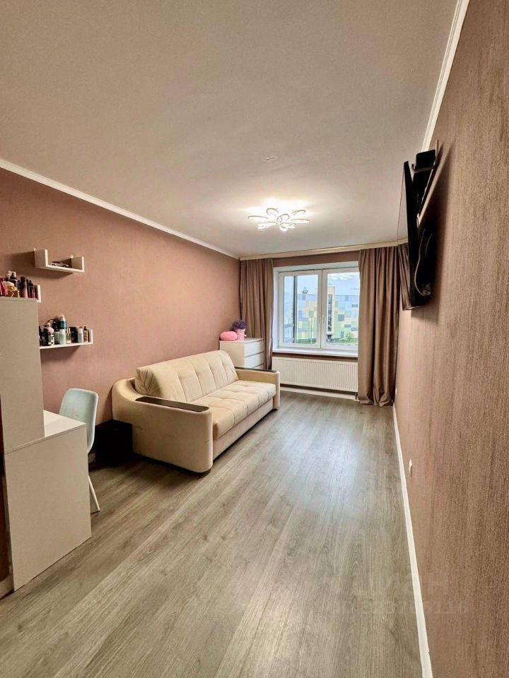 • Общая площадь жилая площадь 34,1 кв.м без учета лоджии (около 3 кв.м), кухня и комната правильной формы, есть гардеробная, с/у совмещенный.