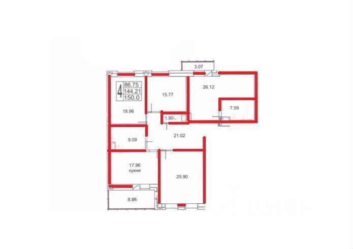 Продаю просторную четырехкомнатную квартиру уникальной планировки площадью 148,7 м кв.!