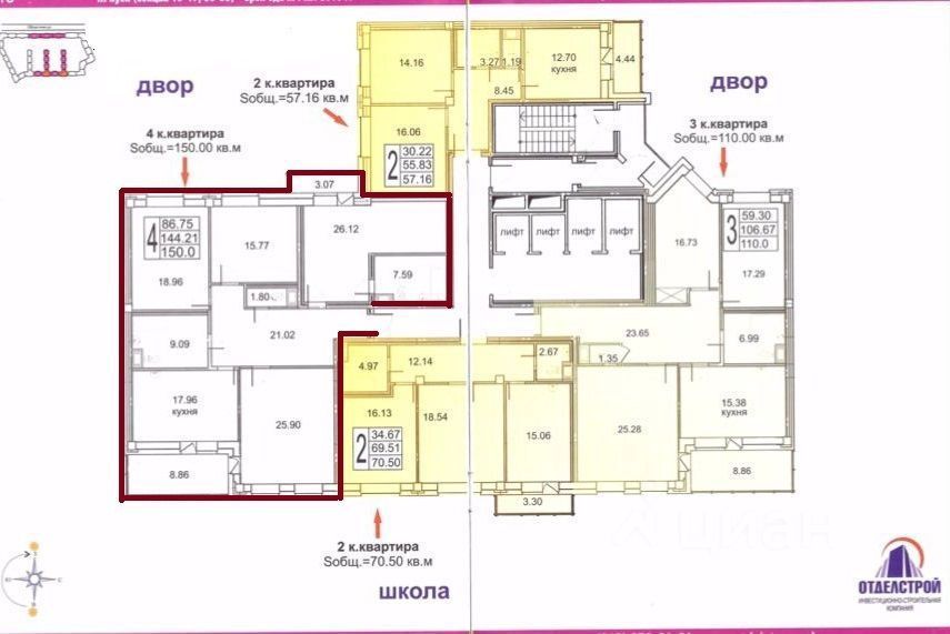 На этаже расположены всего 4 квартиры (1 четырехкомнатная, 1 — трех — и 2 двухкомнатные). На четыре квартиры четыре бесшумных скоростных лифта.