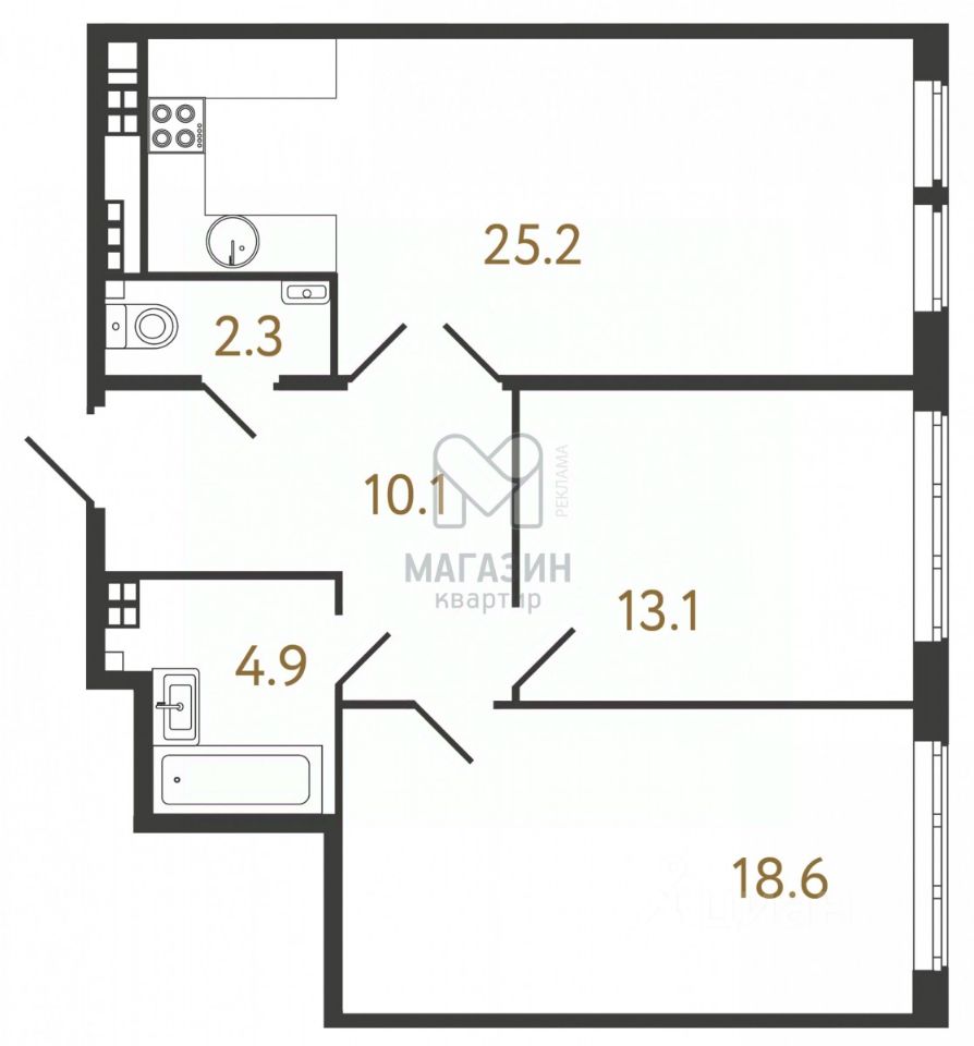 Отличную двухкомнатную квартиру с большой кухней-гостиной,