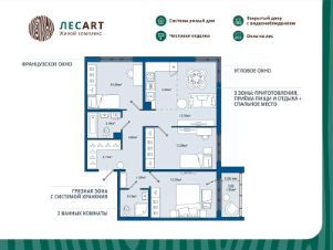 Продаётся 3-комнатная квартира 275, общей площадью 73 кв.м., на 7. Дом комфорт-класса, 12 этажей, в окружении леса и малоэтажной застройки. Проект с умным домом. Передача квартир в сентябре 2026г.