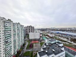 Окна выходят на южную сторону,во двор, в квартире очень светло и тепло в зимнее время года. Красивый панорамный вид за счет расположения на верхних этажах