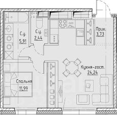 Просторная квартира площадью 48,31 м² прямо на набережной Черной речки — всего 10 минут пешком до Строгановского парка, 7 минут на машине до Петроградского района.
