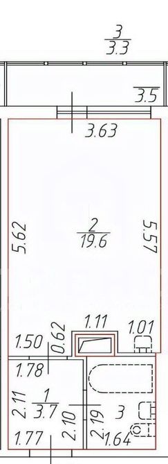 Общая площадь студии составляет 26,6 кв. м, из которых 19,6 кв. м — жилая площадь. Высота потолков 2,7 м создаёт ощущение простора. Также просторная лоджия дает больше пространства для отдыха или хранения.