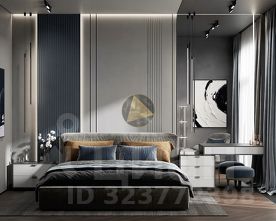 Светлая спальня 15.5 м2 с отдельным санузлом 4.1 м2 и гардеробной.