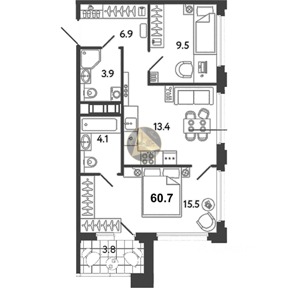 Совмещённый санузел 3.9 м2. Лоджия 3.8 м2.