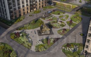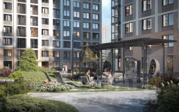 4. На всей территории действует Wi-Fi, входные группы с витражным остеклением и потолками 3,3 м, а также лифты с выходом на уровень подземного паркинга. В холлах — арт-объекты, уличная библиотека, места для встреч.