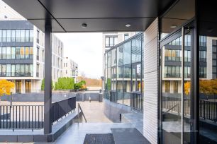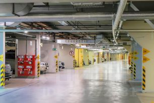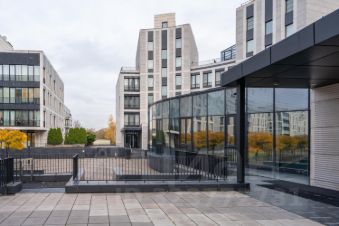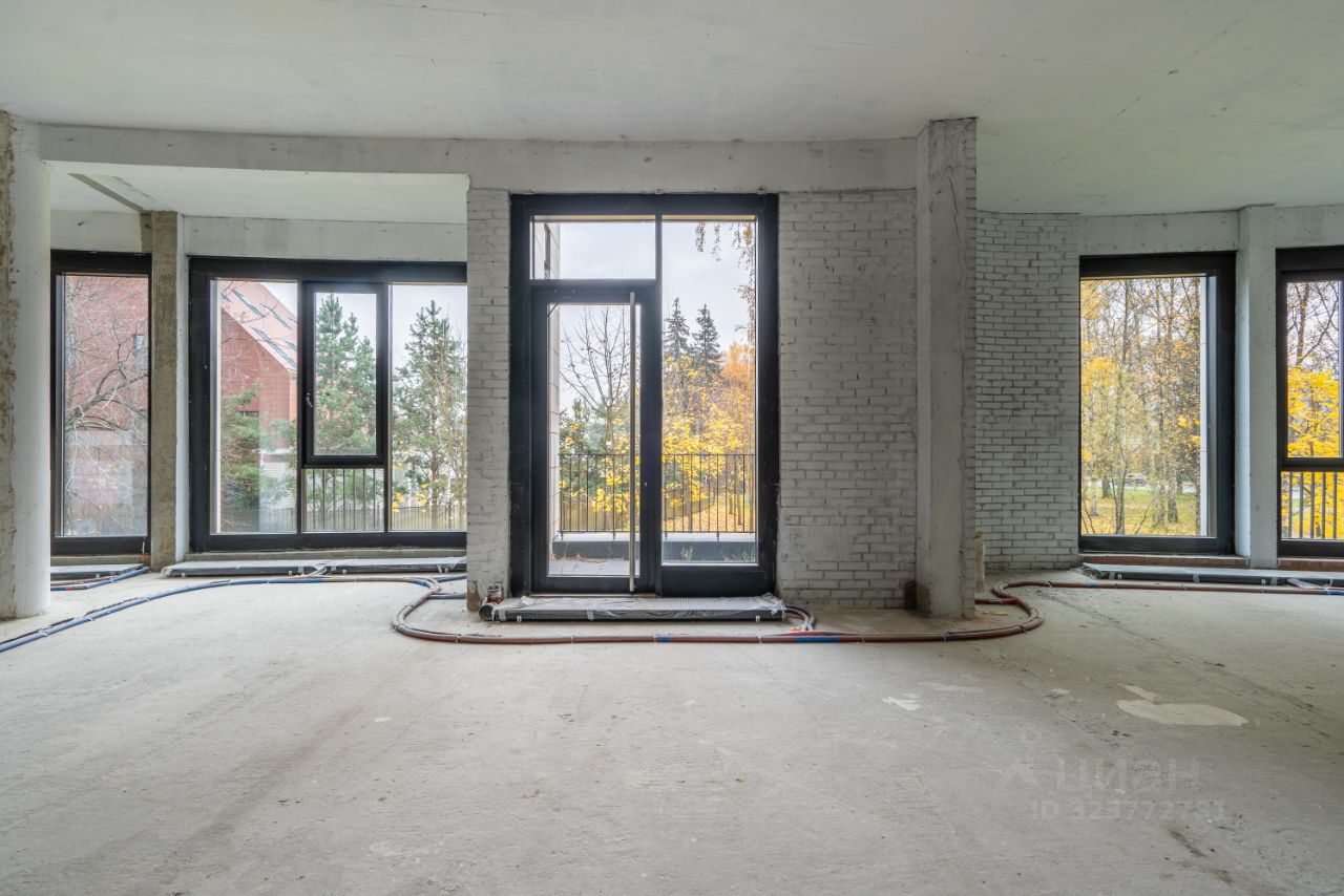 Потолки — 4 метра, по периметру — панорамное остекление и потолочные световые фонари. Выход окон — на закрытую зелёную территорию и парковую часть комплекса. Пространство без несущих стен — возможна гибкая планировка.