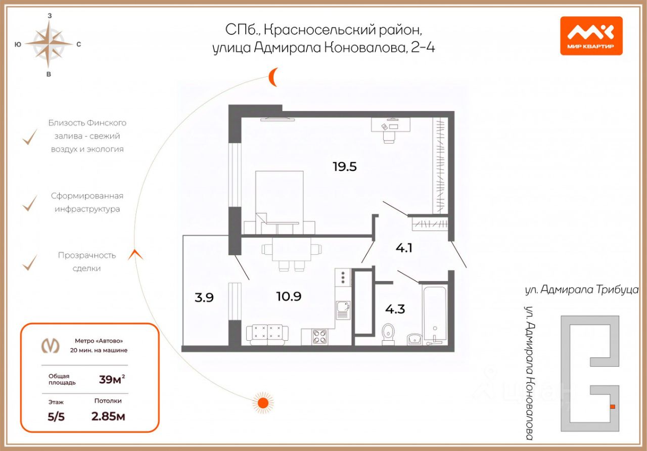 Арт. 124974740 Недалеко от Финского залива, в экологически-чистом районе Юго-Запада, появилась в продаже уютная однокомнатная квартира в ЖК "Жемчужный фрегат".