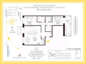 Совокупная площадь квартиры с террасой и балконом составит 102 кв/м. Разработан детальный дизайн проект с визуализацией и планировкой - вам будет легче подготовить помещение для себя. Со всех сторон квартиры красивые виды. Характеристики квартиры позволяют сделать три спальни.