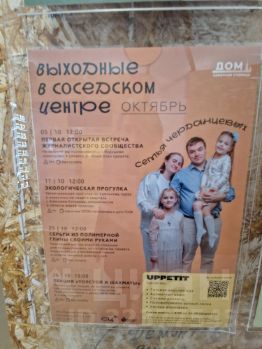 -Есть соседский центр -( коворкинг помещение +лагерь детский для детей и мастер классы для жителей +аренда любого спортивного инвентаря -Бесплатно для жителей ЖК)