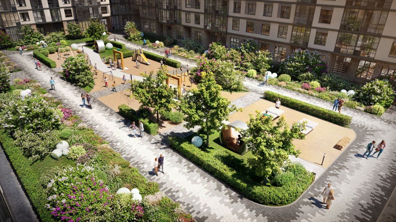 Для семей с детьми — школа, детский сад и спортивный комплекс строятся непосредственно рядом с домом. А также закрытый двор жилого комплекса, свободный от машин. #268FFF
