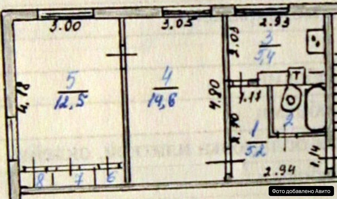 Общая площадь 41.9 кв. М., комнаты смежные, санузел. Раздельный.