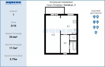 • Транспорт: 7 минут пешком до метро, удобный выезд на КАД. 5 минут до центра города.