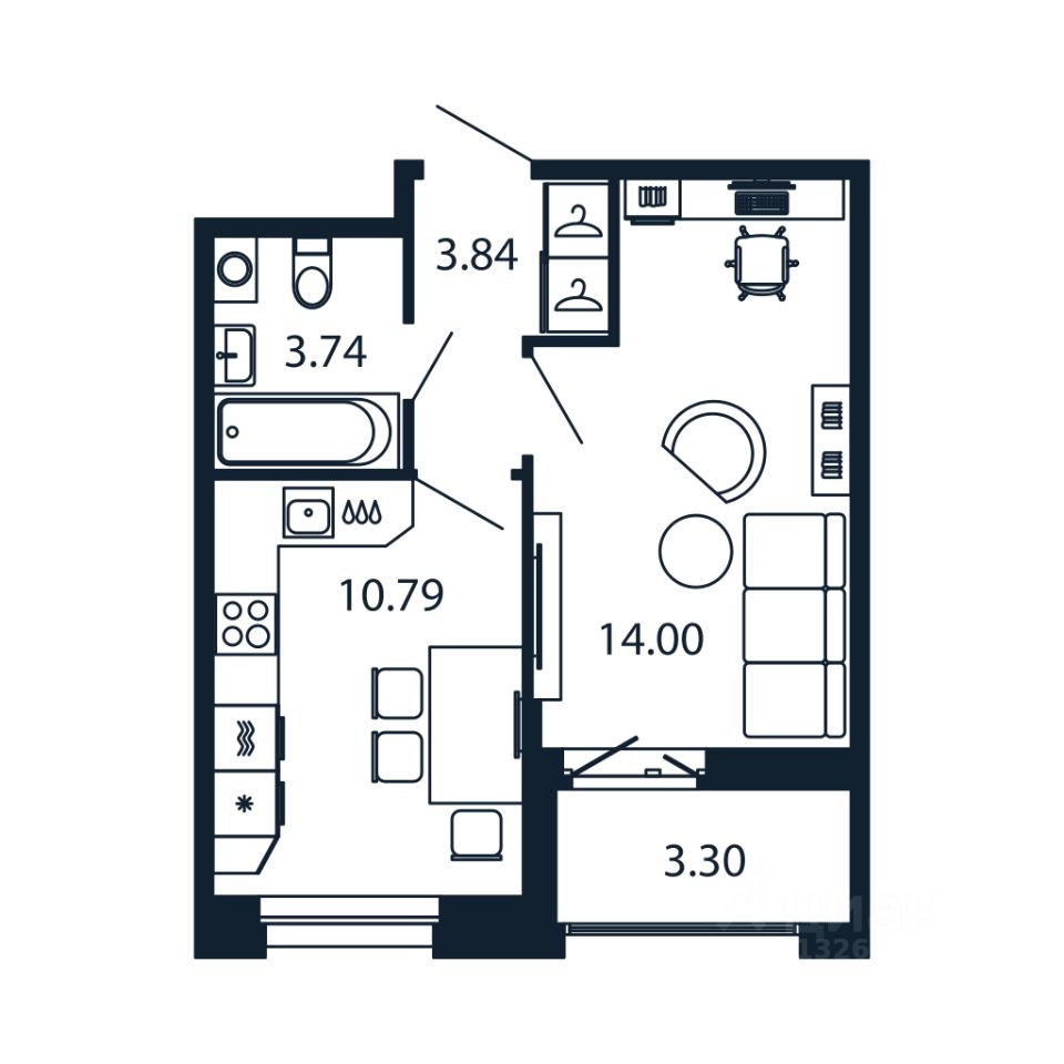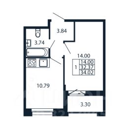 Прямая продажа от застройщика! Готовая Однокомнатная квартира 32.1 кв.м с кухней 10.79 кв.м с чистовой отделкой на 9 этаже в сданном ЖК "Полис Новоселье".