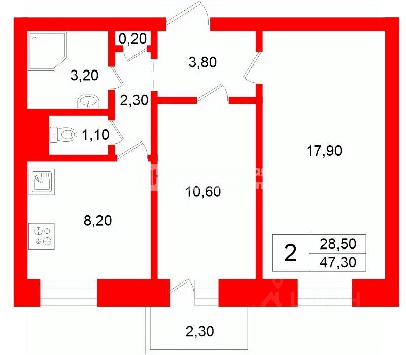 Продается 2-комнатная квартира по адресу: Санкт-Петербург, ул. Васи Алексеева, д. 7.