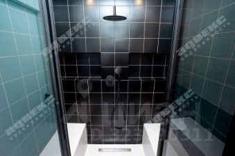 В одном санузле просторная душевая со скамьями с двух сторон, с подогреваемыми стенами и сиденьями-хамам- приятный бонус для прохладного Питера.