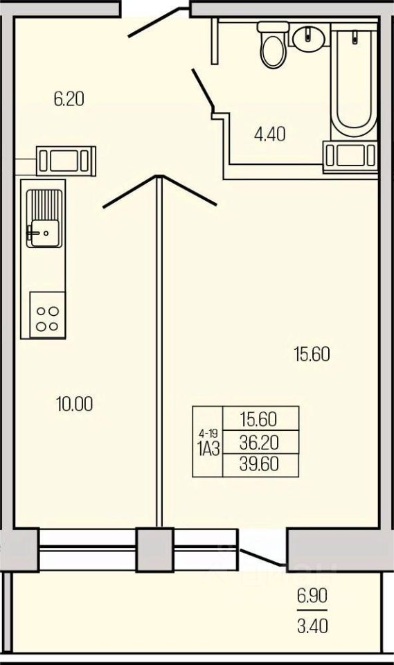 39,05 м²