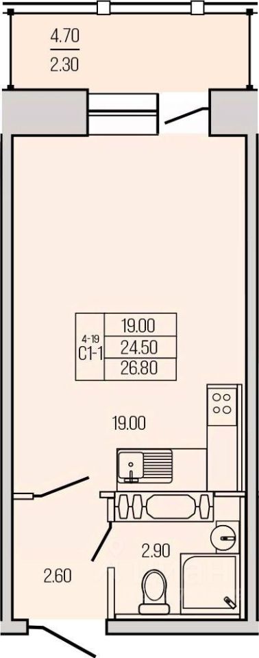 Общая площадь26,45 м²
