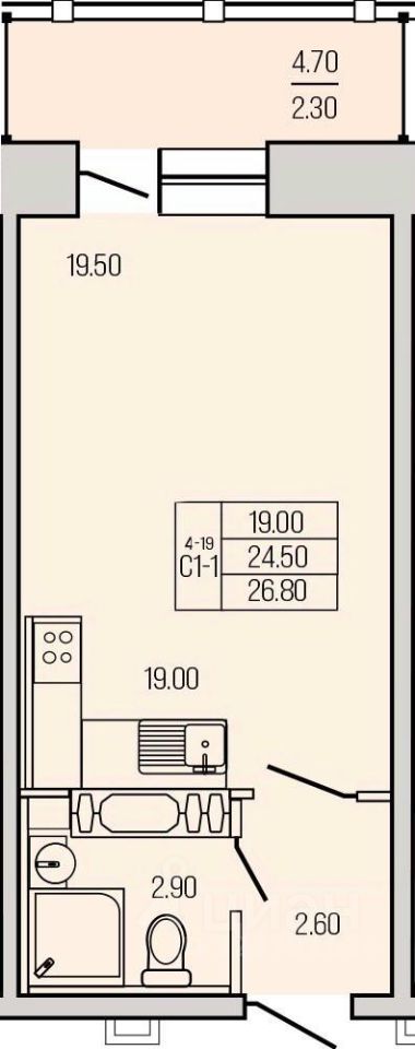 Общая площадь26,55 м²