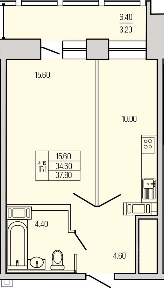 Жилая площадь15,4 м²