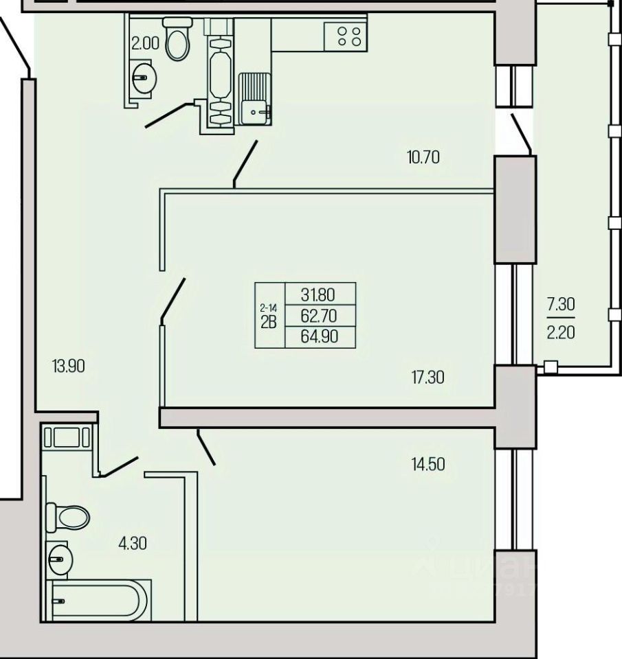 Общая площадь67,1 м²