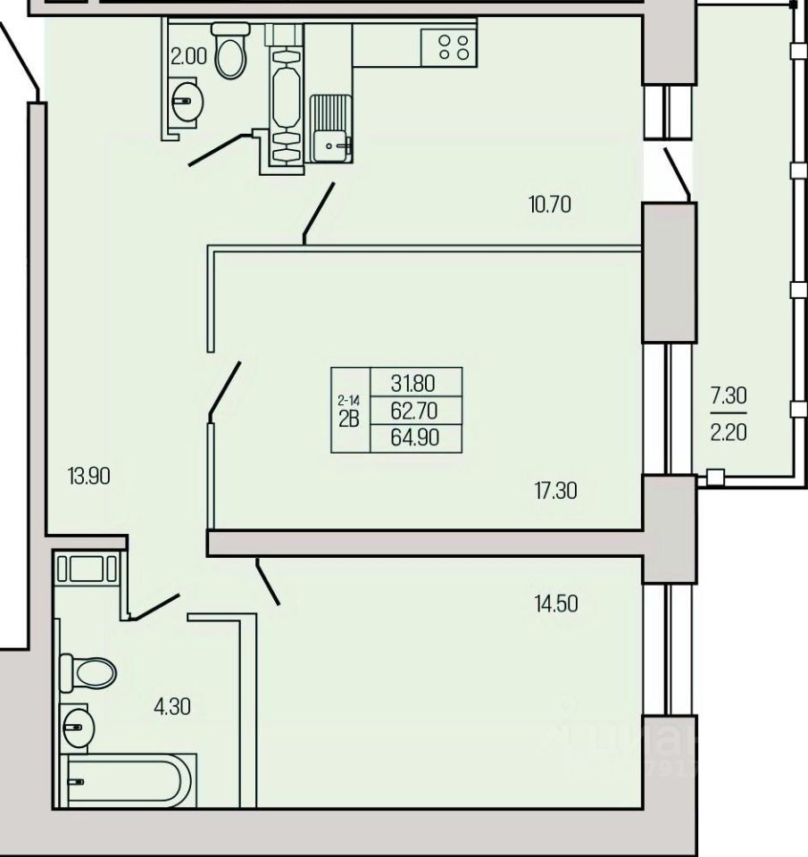 Общая площадь67,1 м²