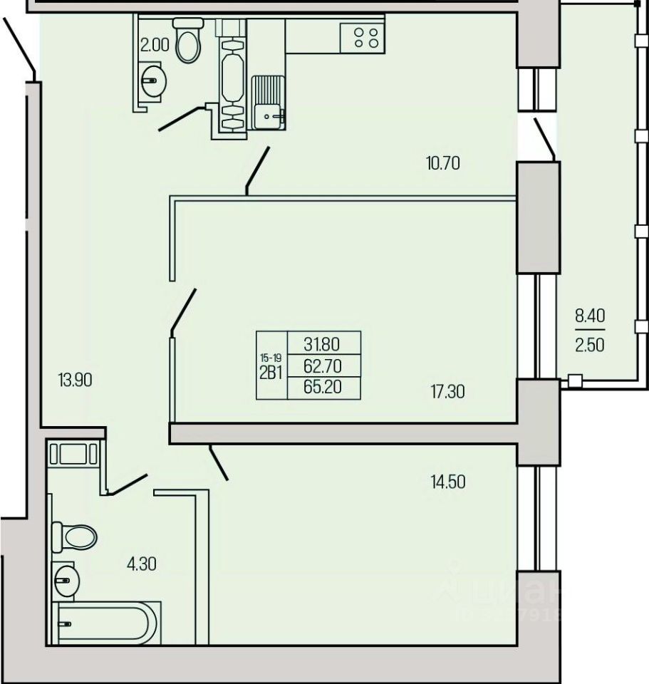 Общая площадь67,1 м²