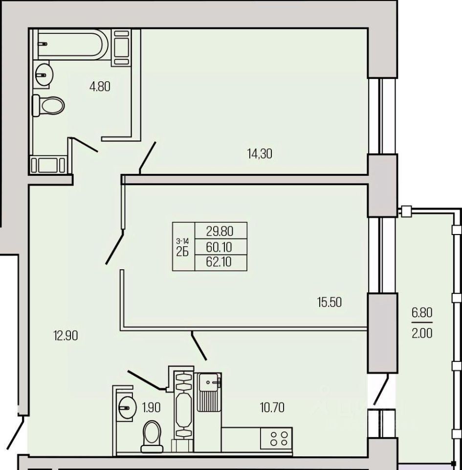 Жилая площадь29,5 м²