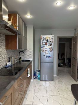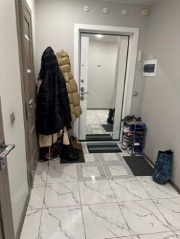 В квартире сделан качественный ремонт. Напольное покрытие в комнатах и коридоре — ламинат 33 класса; в санузле, на кухне — керамическая плитка. Установлен качественный кухонный гарнитур со встроенной посудомоечной. Также поменяна дверь от застройщика на прочную металлическую. Планировка квартиры: