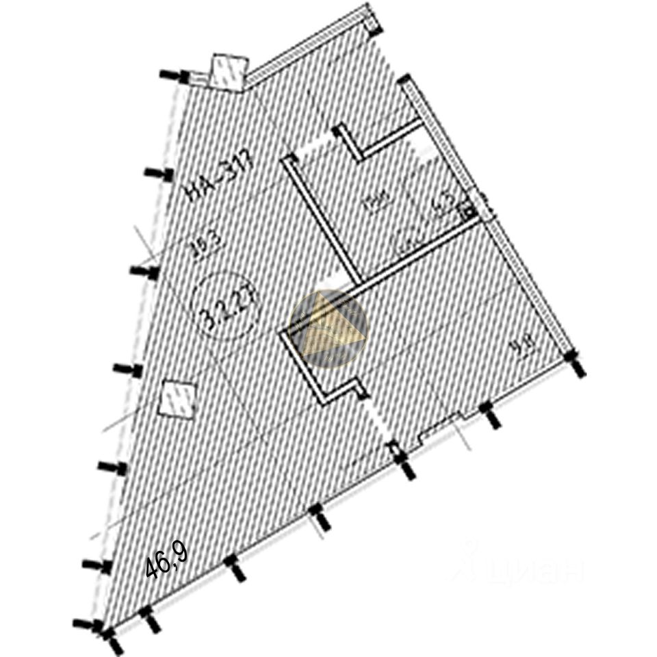 Общая площадь квартиры 46.9 м2.