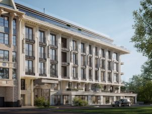 В проекте есть 5 пентхаусов на шестом этаже. Каждый с собственным лифтом, открытой террасой на крыше, персональным гаражным боксом на 3-5 автомобилей и помещением для водителя.