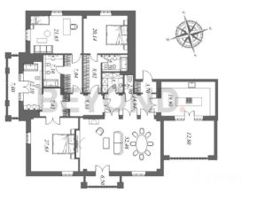 К продаже предлагается резиденция со функциональной планировкой общей площадью 230 кв.м. Пространство позволяет организовать 3 мастер-спальни, кухню-столовую 25,48 кв.м. и просторную гостиную 48,37 кв.м. Зонирование пространства позволяет выделить дополнительную детскую или кабинет, предусмотрены три гардеробные и подсобные помещения под бытовые нужды. Высокие потолки 3,6 метра, установлены двухкамерные дубовые стеклопакеты с высоким уровнем звукоизоляции, входные двери выполнены из массива дуба. Выровнены и подготовлены под чистовую отделку стены, бетонная стяжка пола, есть возможность установить дровяной камин. В доме установлена современная система вентиляции с персональной разводкой и организована автономная система кондиционирования. Большим преимуществом является наличие собственной котельной, для контроля теплообмена установлены радиаторы Kermi (Германия). Также предусмотрены новейшие системы охранно-пожарной сигнализации и пожаротушения, система очистки и фильтрации воды. Из подземного паркинга на бесшумном лифте Otis, с отделкой из деревянных панелей, можно подняться до своих апартаментов, на этаже расположено всего 3 резиденции. Дизайнерская входная группа спроектирована лондонской студией Orange Progect с мраморными полами и венецианской штукатуркой, парадные лестницы выполнены из путиловского камня, поручни из дуба. Фасад привлекает к себе внимание изысканной викторианской архитектурой, где создана атмосфера респектабельного закрытого клуба. Отдельно можно приобрести машино места и кладовую в подземном паркинге .