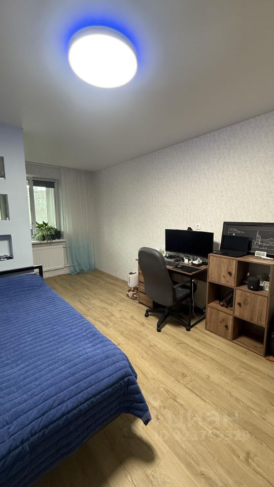 И вишенка на торте: большая комната, в которой сделано зонирование и установлен шкаф купе на всю стену. Кондиционер LG (обслужен и заправлен в этом году). Умный свет. Работает с Алисой, может менять яркость, температуру и цвет подсветки.