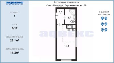 В продаже светлая студия с уникальной планировкой в строящемся жилом комплексе бизнес-класса "Большая Охта".